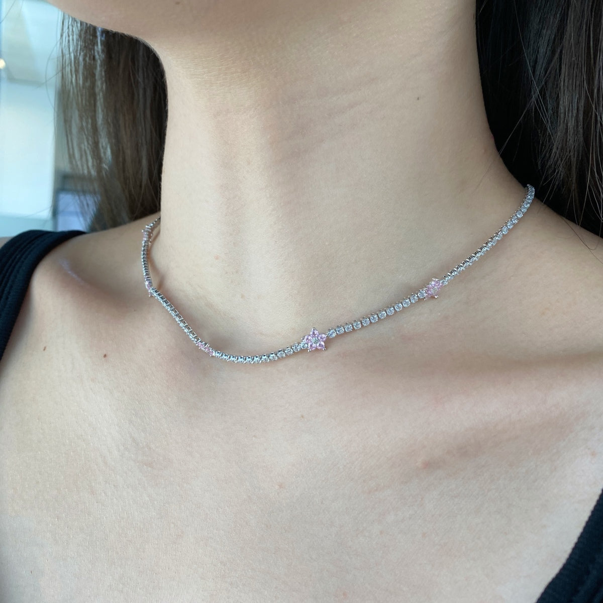 [Amore Jewelry]Luxurious Colorful Flower Tennis Necklace